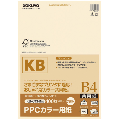 PPCカラー用紙(共用紙) FSC認証 B4 100枚 64g平米 アイボリー