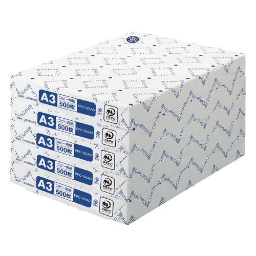 コピー用紙 低価格タイプ・白色度93% A3 500枚/包 69g平米 PPC-WAA3C