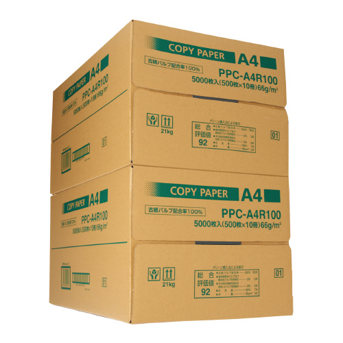 リサイクルコピー用紙 A4 (古紙配合率100%) 500枚/包 PPC-A4R100
