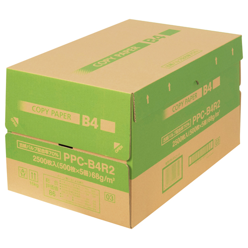 リサイクルコピー用紙 B4 (古紙配合・白色度69%) 500枚/包 PPC-B4R2