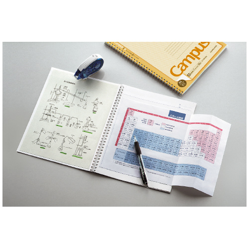 ●資料を貼り付けてもかさばりにくいツインリング製本