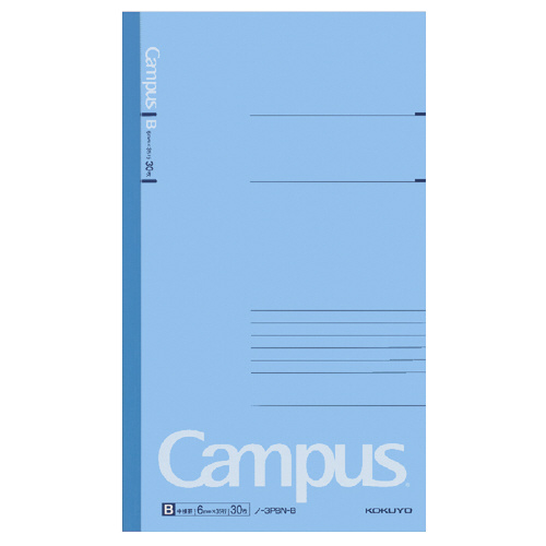 キャンパスノート(スリムB5サイズ) 罫幅6mm 35行 30枚 青 ノ-3PBN-B