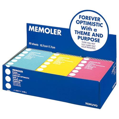 ポケットメモ<メモラー>スパイラルとじ A7 罫幅7mm 50枚 3色×10冊 メ-300ツメ