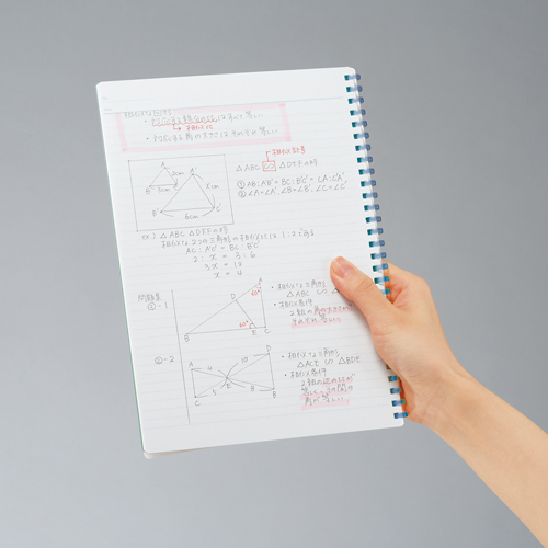 ●リングに色がついているので、色ごとに用途や教科分けした際、背で見分けることが可能