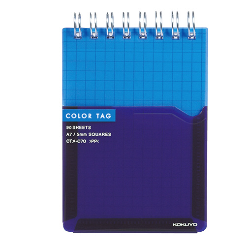 ツインリングメモ <カラータグ> A7 5mm方眼罫 90枚 ブルー CTメ-C70B