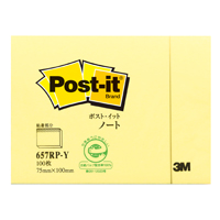 ポスト・イット再生紙ノート 75×100mm 100枚 イエロー 657RP-Y