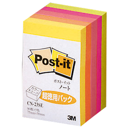 ポスト・イットカラーキューブ超徳用 75×50mm 450枚 蛍光5色 CN-23SE
