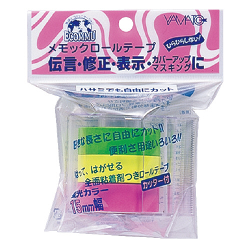 メモックロールテープカッター付 3巻入 15mm×10mローズ・レモン・ライム RK-15CH-B