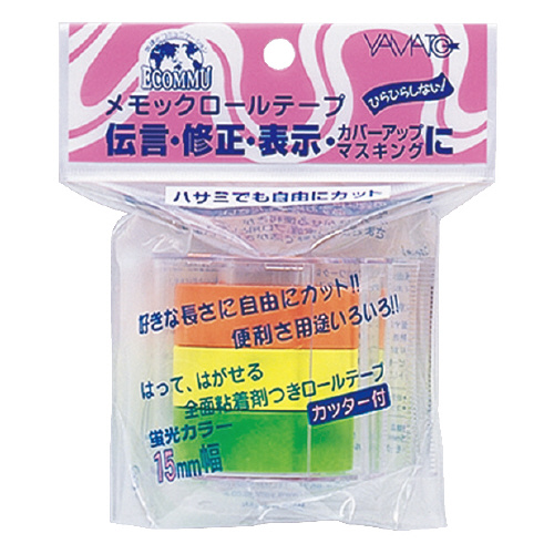 メモックロールテープカッター付 3巻入 15mm×10mライム・レモン・オレンジ RK-15CH-A
