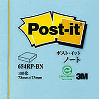 ポスト・イット再生紙ノート 75×75mm 100枚 ブルー 654RP-BN