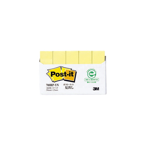 ポスト・イット再生紙見出し 50×15mm 100枚×5 イエロー 700RP-YN
