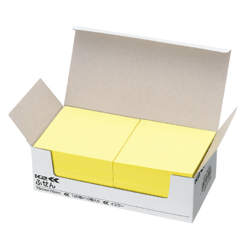 ふせん <K2> 75×75mm イエロー 100枚×10冊 K2メ-7575Y