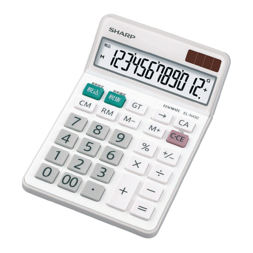●好きな表示角度に変えられるチルト付き電卓 ●仕様/12桁 ●プラスチックキー ●税計算 ●サイズ/W110×D170×H12.5mm ●質量/約147g ●グランドトータルメモリー(GT) ●演算状態表示 ●早打ち対応 ●表示部保護(アクリルパネル) ●すべり止めゴム足付き ●電源/太陽電池+CR2032×1 ●太陽電池による電力供給 ●保証期間/1年