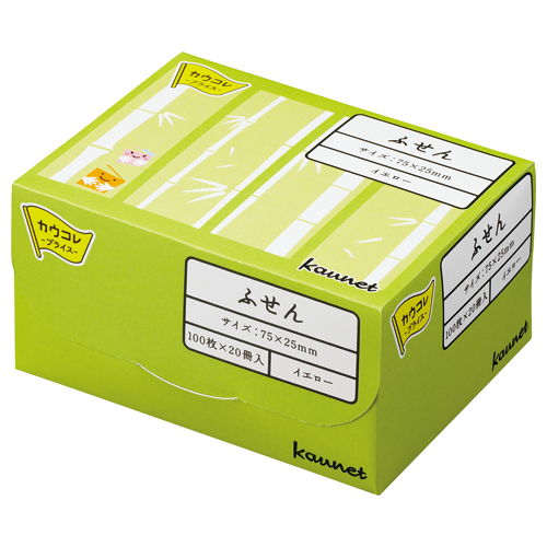 カウコレ再生紙ふせん 75×25 イエロー 20冊入 5007-0060